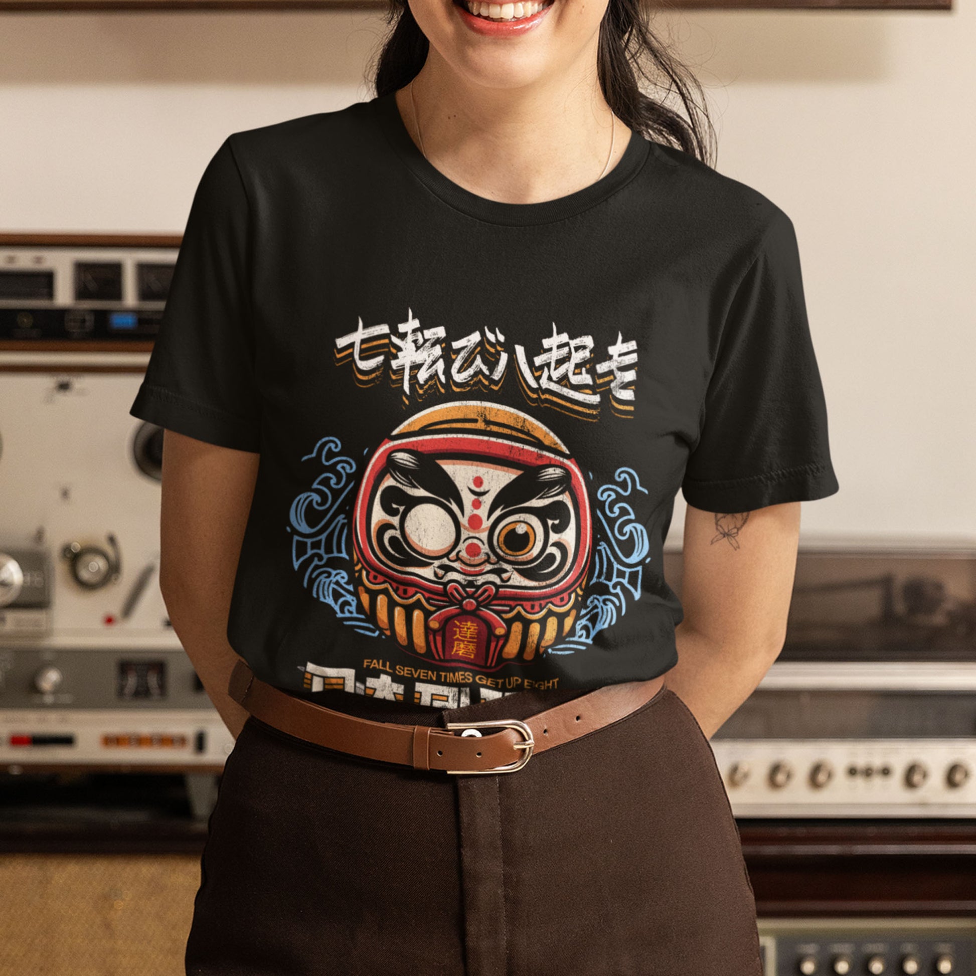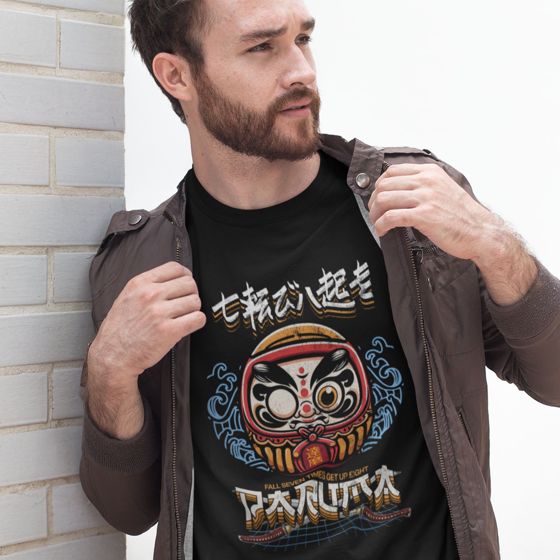 Embody Japanese resilience and strength with our striking Daruma Doll Samurai T-Shirt! This unique design features a vibrant Daruma doll, symbol of Japanese perseverance with Samurai swords representing courage and honor - inspired by Hokusai's iconic art.