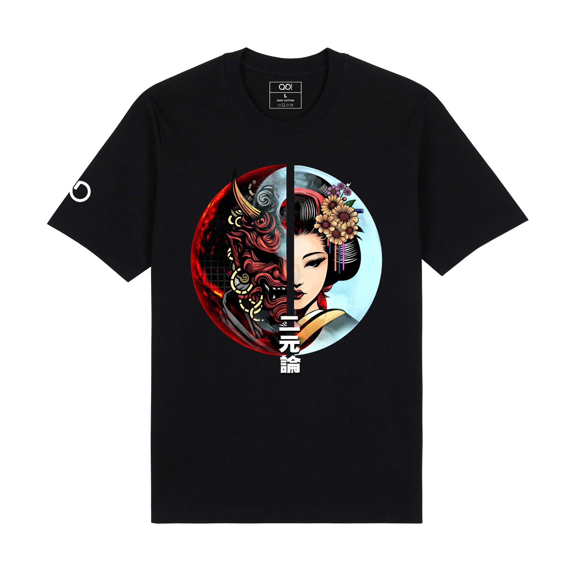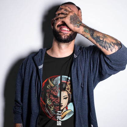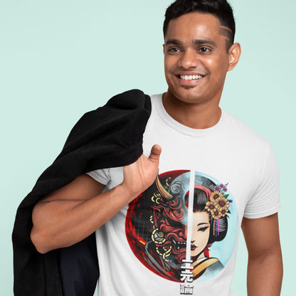 A tale of two faces—The fierce Hannya mask (Onyo) and the graceful Geisha (Yin) merge into a striking contrast, embodying balance and duality. With Yin and Yang in the background, “Dualism” comes to life, showcasing the captivating beauty of opposing forces in perfect harmony.